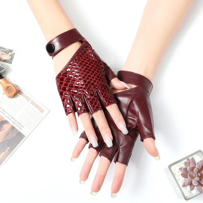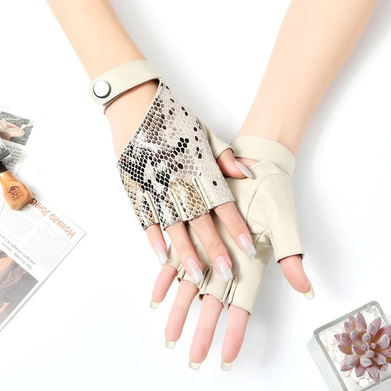 Genuine Leather Half-Finger Snake Skin Gloves – Stylish Biker & Fashion Wear