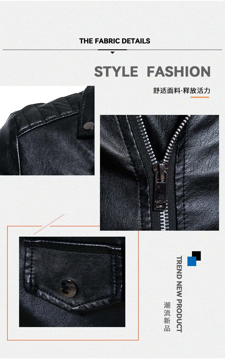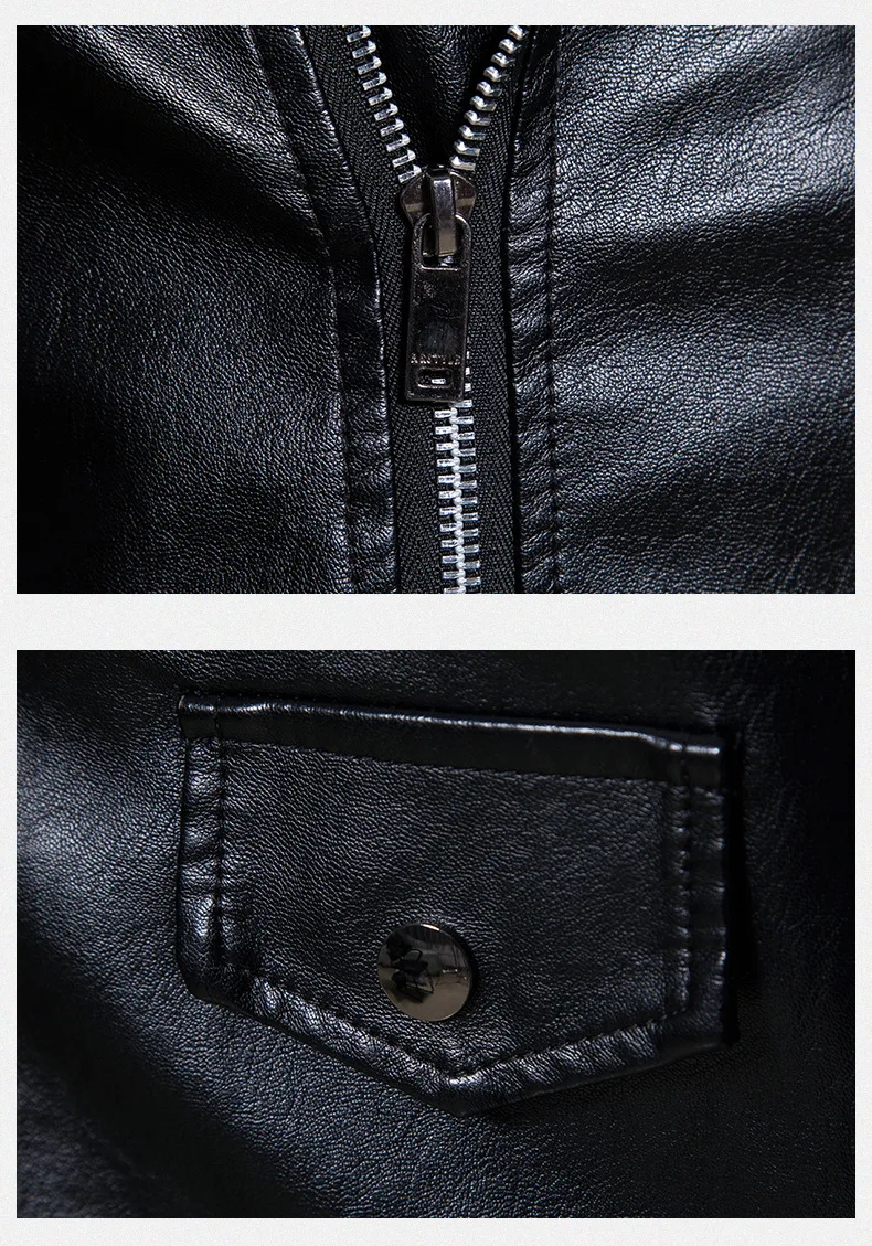Crafted from high-quality faux leather, it offers the look of genuine leather while remaining lightweight, durable, and easy to maintain. The stand collar design adds a clean, structured finish, making this jacket versatile enough for casual wear, street style, or light motorcycle riding.