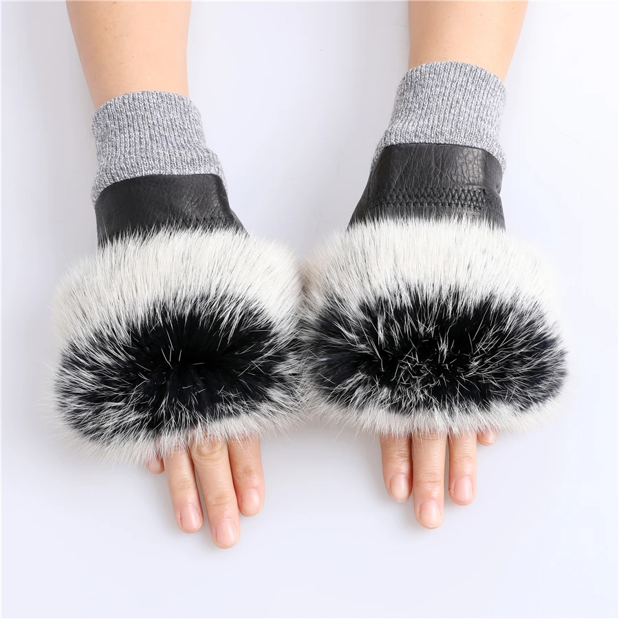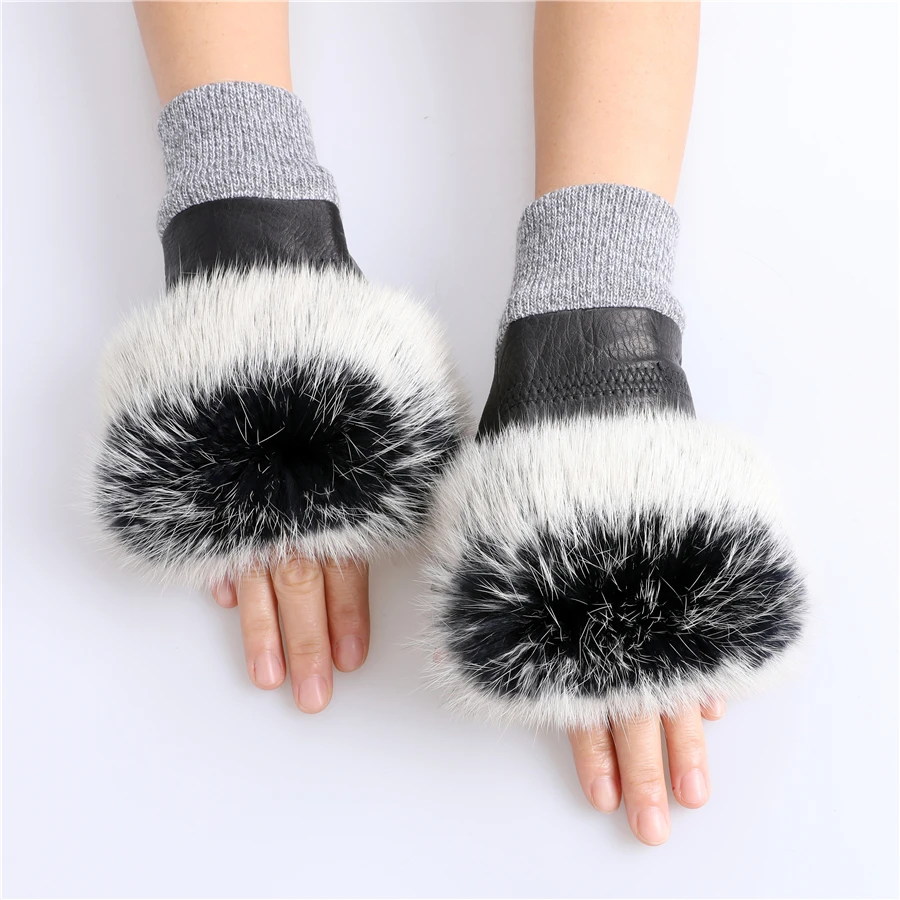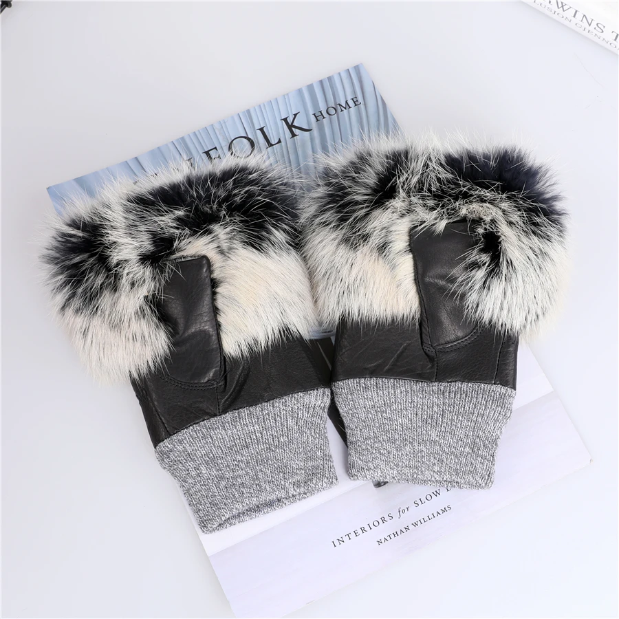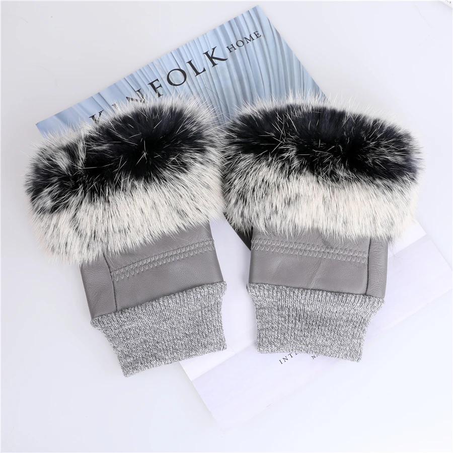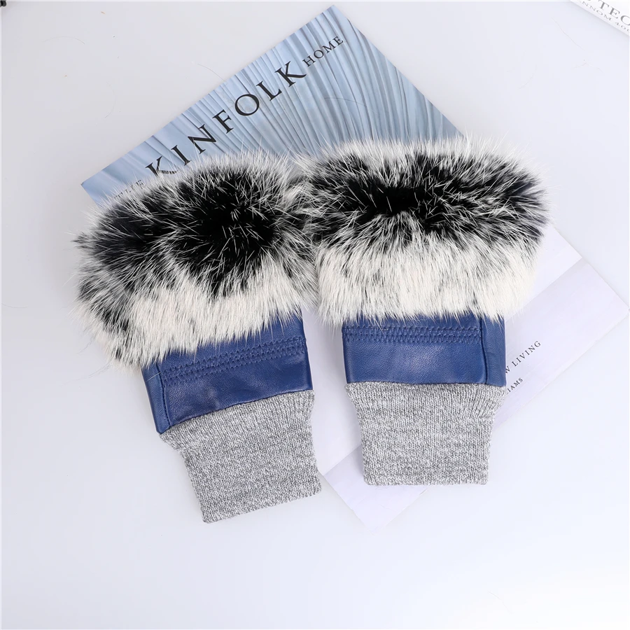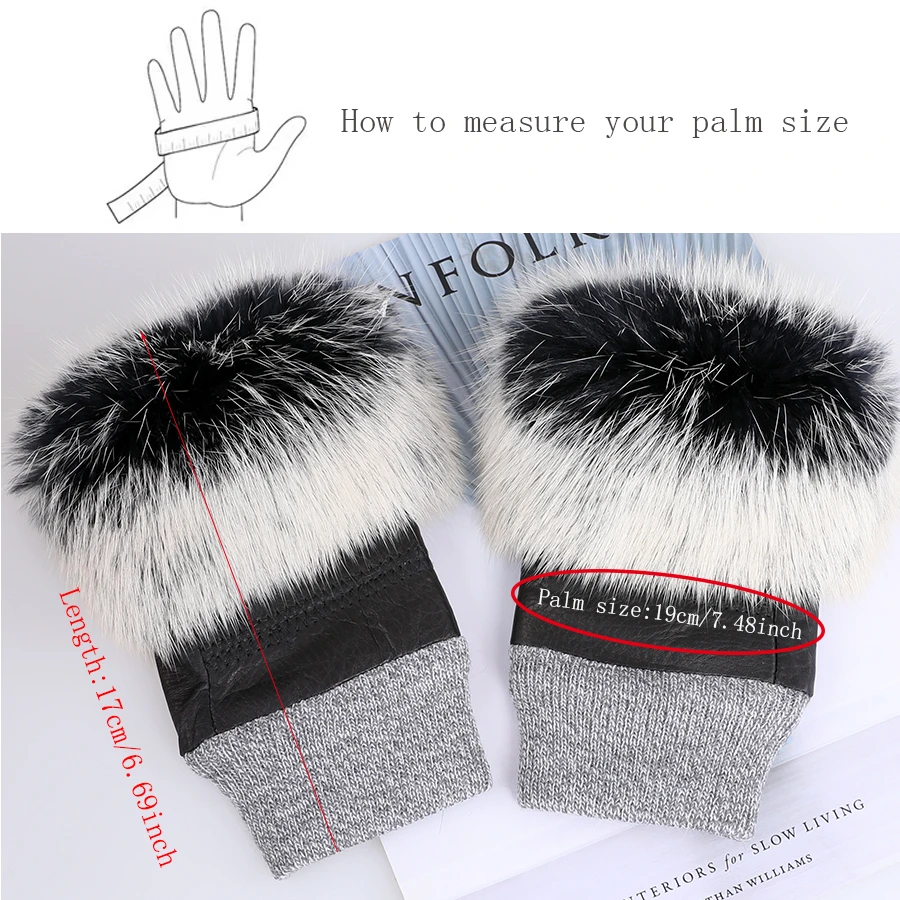 Experience luxurious winter style with these genuine leather gloves featuring ultra-soft rabbit-fur cuffs and a fluffy fox-fur pom pom accent. Crafted with exceptional softness and warmth, the pom pom measures approximately 13cm (5.12") in diameter, adding a charming and elegant touch to any cold-weather outfit.