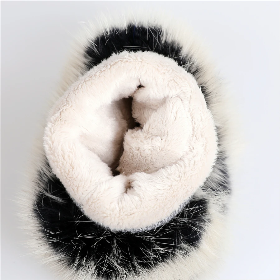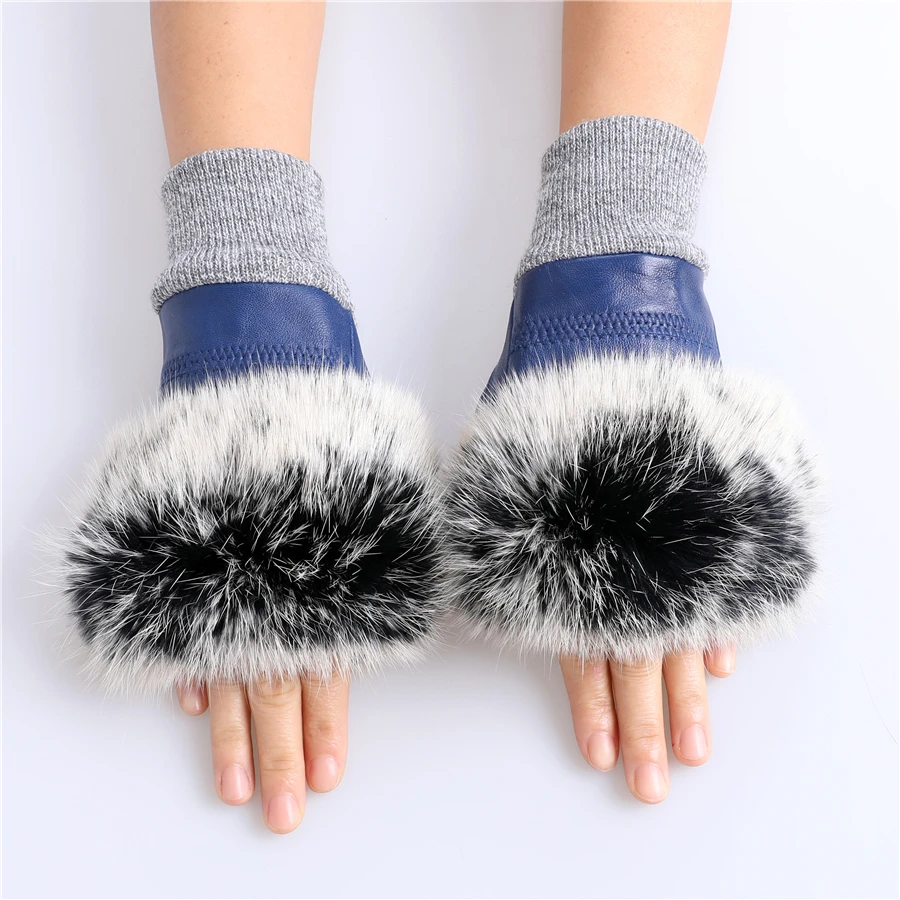 Material: 100% Genuine Leather + Rabbit Fur Cuffs + Fox Fur Pom Pom