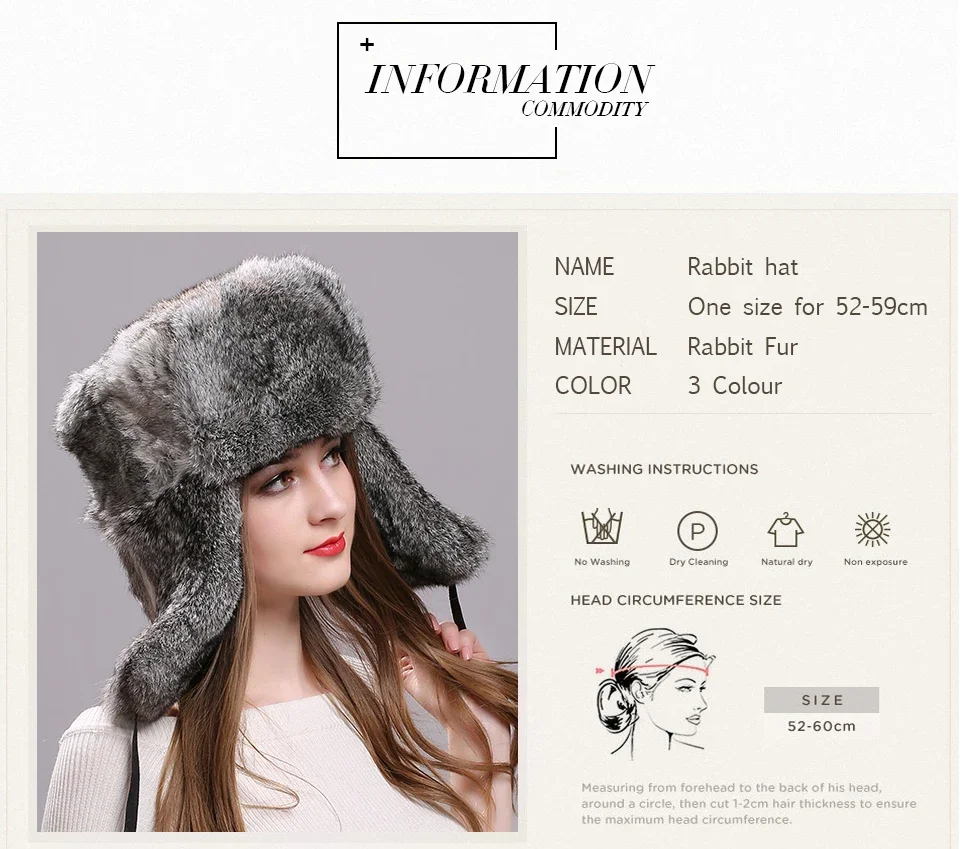 Don't miss out on this exclusive winter essential! Grab your Rabbit Fur Bomber Hat today and embrace the cold in style. Limited stock available!