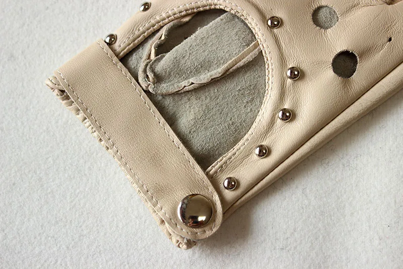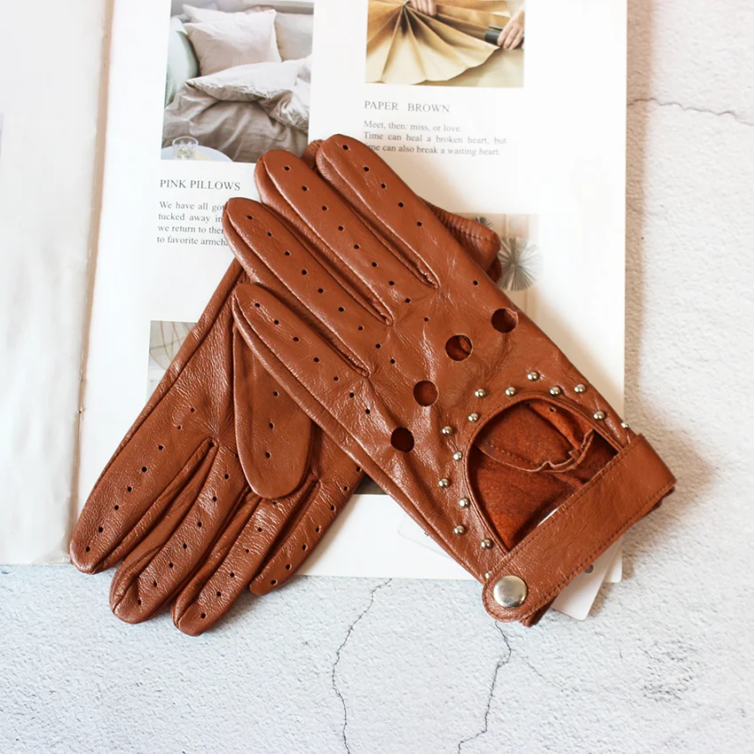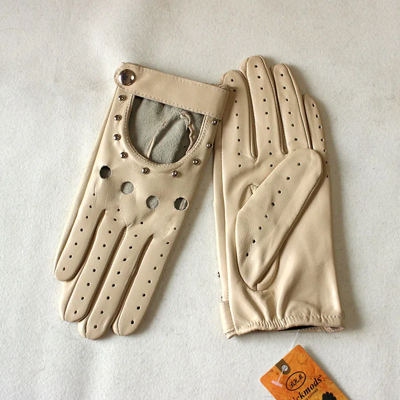 Eye-catching hollow patterns and rivet details elevate the gloves with modern elegance and improved airflow.