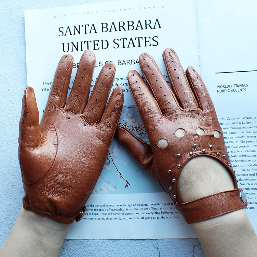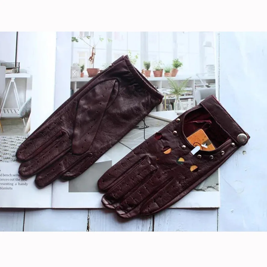 Designed with a fashionable hollow-out pattern, breathable perforations, and handmade rivet detailing, these gloves bring a bold, sophisticated touch to any outfit. Their thin, unlined design makes them ideal for summer driving, outdoor cycling, motorcycle riding, and daily wear—offering protection without heat buildup.